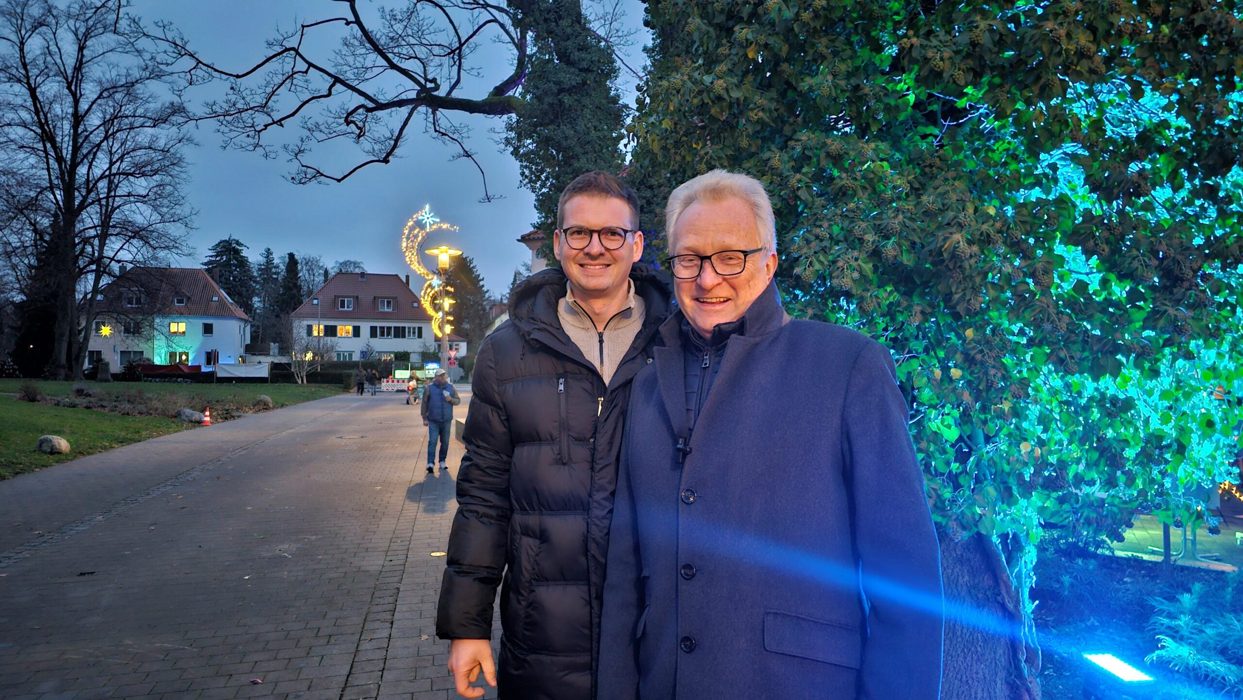 Ein zweiter Höhepunkt dieses Freitags war das Einschalten der Weihnachtsbeleuchtung in Kirchrode. Die GKK sorgt jedes Jahr dafür, dass die Lichterstrahlen über die großen Straßen gelegt werden. In Zeiten steigender Kosten ist dafür Unterstützung notwendig. In diesem Jahr hat die Volksbank mit einer Spende von 2.000 Euro einen wichtigen Beitrag geleistet. Dank dieser Beteiligung konnte die Beleuchtung wie gewohnt installiert werden und tauchte Kirchrode am Abend in ein warmes, stimmungsvolles Licht.